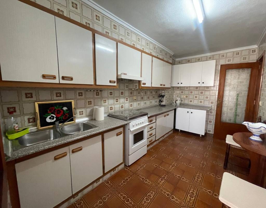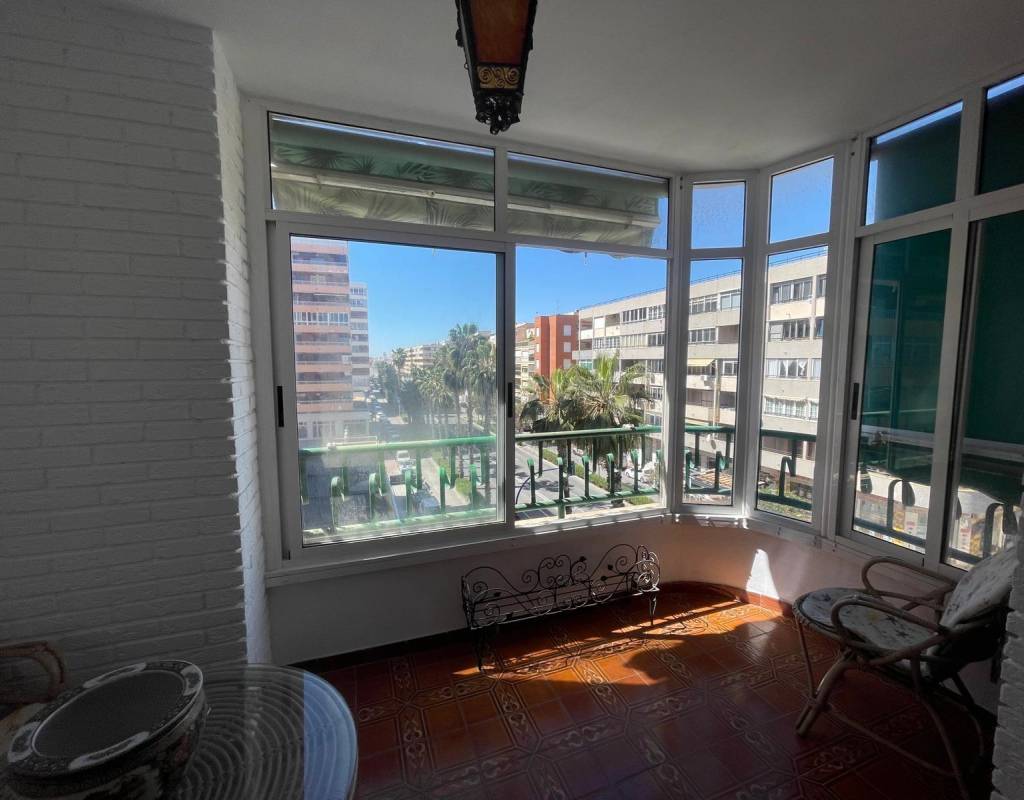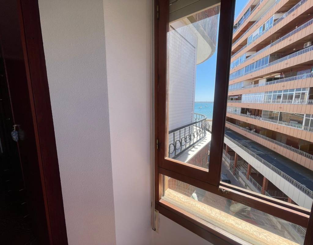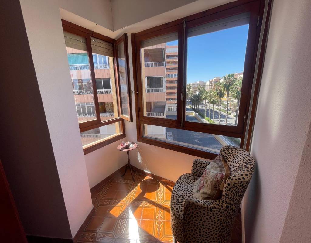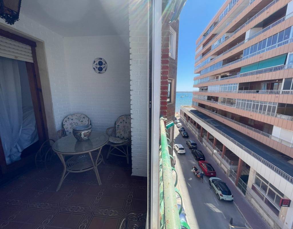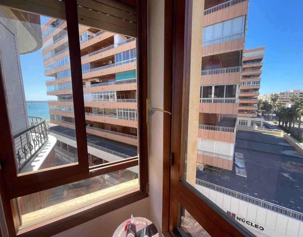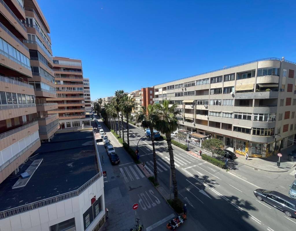 Apartment very close to the beach and on a main street in Torrevieja, with all kinds of services just a stone's throw away.~This spacious apartment consists of 3 bedrooms, 2 bathrooms, a large separate kitchen, and a terrace overlooking the sea on one side and a main street in Torrevieja on the other, where you can enjoy and relax with magnificent views.~This apartment has an alarm system and also has great potential to be remodeled to your liking. Thanks to its spaciousness, any improvements will make this home an ideal place to live year-round or for vacations.