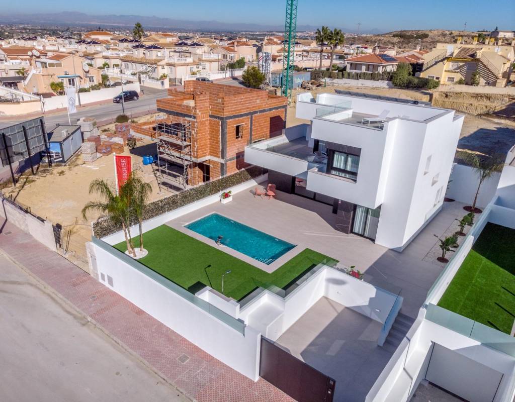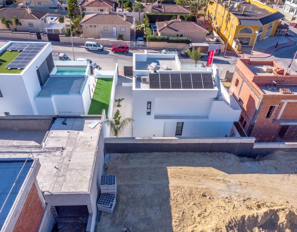 NEW BUILD VILLAS IN ROJALES~~New Build exclusive development of villas in Rojales.~~Beautiful villas build over 2 floors with 3 bedrooms, 3 bathrooms, open plan kitchen with lounge area and terrace.~~Villas build on independent plots where you have garden with private pool and parking space.~~An options for a solarium at an extra cost.~~There a 3 golf courses nearby and the blue flag beaches are just a short 10 minute drive away.~~~Rojales it is a lovely village with all services such as supermarkets, pharmacies, banks, restaurants and natural park located very close to the villas.~~There are several golf courses close by as well as water parks in nearby Rojales and Torrevieja.~~Alicante & Murcia airports are 45 minutes drive away.