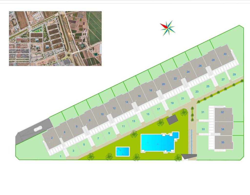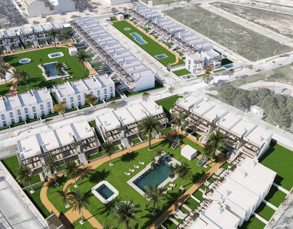 Newly built bungalows in Pilar de la Horadada~~Modern homes near the beach~Discover this exclusive new residential complex in Pilar de la Horadada, offering bungalows and semi-detached houses less than 2 km from the beach. Designed for comfort and style, these homes are an excellent opportunity to enjoy life on the Costa Blanca.~~Spacious and stylish homes~This development offers 2- and 3-bedroom homes with 2 bathrooms and private parking. Choose from:~Ground floor bungalows with private gardens.~First floor bungalows with private solariums.~Semi-detached houses with basements and large plots.~~Each property is built with high-quality materials and modern finishes, including:~Ducted air conditioning.~Aluminium exterior carpentry, double glazing and injected aluminium shutters.~Security entrance door for added peace of mind.~Aerothermal system for efficient hot water production.~Fitted wardrobes in bedrooms.~Fully equipped bathrooms with furniture and shower screens.~~Exclusive community features~This private residential complex has a beautiful communal swimming pool and landscaped gardens, creating an ideal space for relaxation. Located on the outskirts of the town centre, residents can walk to supermarkets, restaurants, bars, schools and other essential amenities.~~Prime location in Pilar de la Horadada~Pilar de la Horadada is a charming Spanish town in the southernmost part of the Costa Blanca. It offers a vibrant main street with numerous shops, supermarkets, restaurants and picturesque squares.~~The stunning beaches of Torre de la Horadada and Mil Palmeras are just 5 minutes away, with fine golden sand a picturesque promenade. The town also offers well-developed cycle paths and hiking trails, as well as a wide range of sporting activities.~~Convenient access to key destinations~Lo Romero golf course - 5 km (10 minutes by car).~Corvera Airport (Murcia) - 40 km (40 minutes by car).~Alicante Airport - 55 km (55 minutes by car).~Shopping centres (La Zenia Boulevard) - 15 km (15 minutes by car).~Torre de la Horadada Marina - 3 km (5 minutes by car).~~Secure your dream home today~Don't miss this fantastic opportunity to own a brand new home in a prime location. Contact us today for more information and to arrange a viewing.