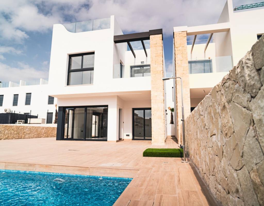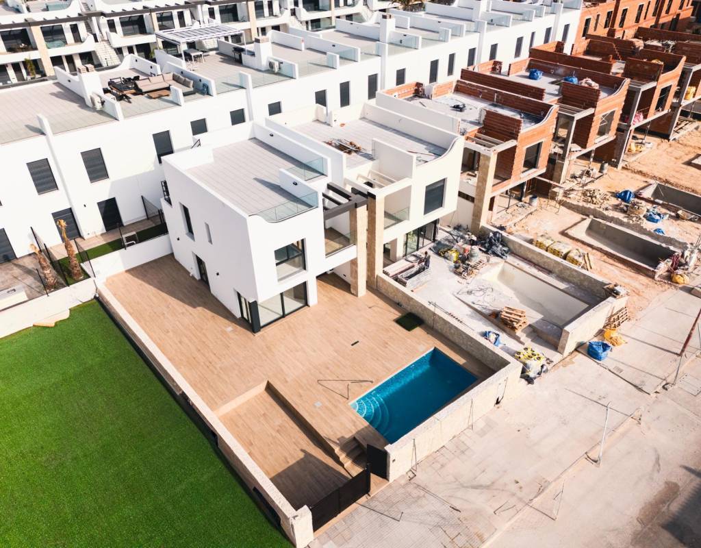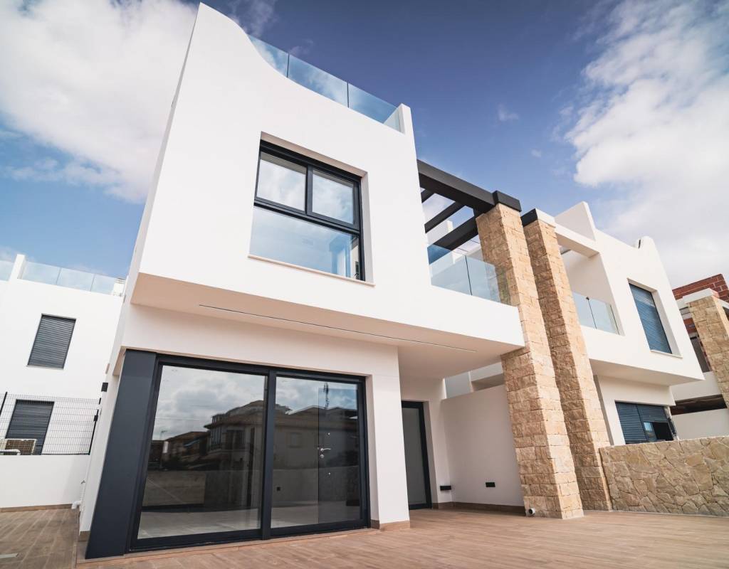 COMPLEXE RÉSIDENTIEL DE NOUVELLE CONSTRUCTION À PUNTA PRIMA~ ~ Complexe résidentiel de nouvelle construction composé d'appartements de plain-pied et de 7 villas individuelles à Punta Prima.~ ~ Les villas New Build sont distribuées sur deux étages, plus la terrasse ensoleillée sur le toit. ~ ~ Au rez-de-chaussée, il y a une salle de séjour lumineuse et spacieuse avec sa cuisine ouverte, 1 chambre à coucher avec placard et 1 salle de bain.~ ~ Au premier étage, vous trouverez 3 autres chambres à coucher avec placards et 2 salles de bains, dont une en-suite avec la chambre principale. De la chambre principale vous pouvez accéder à une terrasse.~ ~ En montant les escaliers, vous accédez à un solarium privé.~ ~ L'urbanisation offre de beaux espaces verts avec une aire de jeux pour les enfants, une salle de sport et deux piscines communes. ~ ~ Complexe situé à quelques mètres du centre de Punta Prima où vous trouverez toutes les commodités dont vous pourriez avoir besoin.~ ~ Dans les environs, vous trouverez un large éventail de restaurants, cafés, supermarchés, pharmacies et toutes les commodités dont vous pourriez avoir besoin.~ ~ ~ Punta Prima, située à seulement 5 km de Torrevieja, se caractérise par de bonnes infrastructures de communication et de santé, la proximité de l'aéroport d'Alicante et le nombre de services ouverts toute l'année.~ ~ À seulement 10 km, on trouve les terrains de golf de Villamartín, Campoamor, Las Ramblas, Las Colinas et Lo Romero, ainsi que les centres commerciaux de La Zenia et Habaneras.