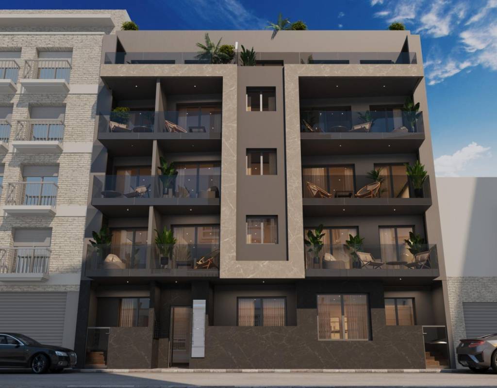 Appartements neufs à Torrevieja, à seulement 600 mètres de la plage Playa del Cura~~Emplacement privilégié au cœur de Torrevieja~Découvrez ces appartements et penthouses neufs dans l'un des quartiers les plus prisés de Torrevieja, à seulement 600 mètres de la plage Playa del Cura et à 400 mètres de la promenade en bord de mer. Situé dans le centre-ville, ce quartier animé offre toutes les commodités essentielles à quelques minutes à pied, notamment des supermarchés, des magasins, des restaurants, des cafés et les transports en commun. Torrevieja est une ville côtière réputée de la Costa Blanca, célèbre pour son climat méditerranéen doux, son atmosphère animée et son mode de vie balnéaire tout au long de l'année.~~Appartements modernes avec des agencements spacieux~Ce nouveau développement exclusif se compose de seulement 14 appartements et penthouses, comprenant des studios et des propriétés de 1 ou 2 chambres, conçus pour offrir confort, fonctionnalité et style contemporain. Toutes les maisons disposent d'une cuisine ouverte reliée au salon-salle à manger, équipée d'appareils électroménagers, créant des intérieurs lumineux et accueillants. Les chambres sont équipées d'armoires encastrées et les salles de bains sont entièrement équipées avec des meubles, des miroirs, le chauffage au sol et des parois de douche.~~Finitions de qualité et caractéristiques écoénergétiques~Les appartements sont construits avec des matériaux de haute qualité et accordent une grande importance à l'efficacité énergétique. Les menuiseries extérieures en aluminium sont dotées d'une technologie à rupture thermique et d'un double vitrage pour l'isolation thermique et acoustique. Les stores motorisés ajoutent confort et sécurité. Chaque logement est pré-équipé pour la climatisation et le chauffage central, dispose de portes d'entrée renforcées, d'un pack d'éclairage et de portes intérieures laquées blanches. L'eau chaude est produite par un système aérothermique, ce qui réduit la consommation d'énergie et améliore la durabilité.~~Solarium sur le toit avec piscine commune~Les résidents peuvent profiter d'un solarium exclusif sur le toit avec piscine commune, barbecue, sauna et espace de bronzage avec chaises longues, accessible par ascenseur ou par les escaliers. Cet espace privé est idéal pour se détendre, prendre un bain de soleil et profiter d'une vue panoramique sur la ville. Il offre un havre de paix au-dessus des rues animées de Torrevieja et ajoute une valeur significative au projet.~~Mode de vie et environnement de Torrevieja~Torrevieja est connue pour son long littoral, ses plages de sable et ses marais salants emblématiques. Le parc naturel Lagunas de La Mata y Torrevieja se trouve à environ 5 km et offre des sentiers de randonnée et des paysages uniques. Plusieurs terrains de golf, tels que Villamartin Golf et Las Colinas Golf, se trouvent entre 12 et 18 km. La marina et le port de Torrevieja sont à environ 1 km. L'aéroport d'Alicante est à environ 45 km et l'aéroport international de Murcie à environ 65 km, tous deux offrant d'excellentes liaisons européennes.~~Votre maison sur la côte vous attend~Ne manquez pas cette occasion d'acheter un appartement moderne et neuf près de la plage à Torrevieja. Contactez-nous dès aujourd'hui pour obtenir plus d'informations ou pour organiser une visite privée.