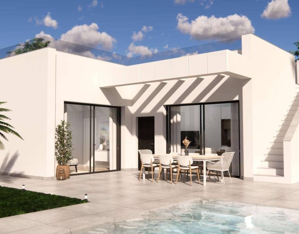 Eksklusive nybyggede villaer i Ciudad Quesada - design, komfort og privilegert beliggenhet~~Boliger av høy kvalitet i privilegerte omgivelser~Oppdag disse 7 fantastiske frittliggende villaene i Ciudad Quesada - Rojales, et av de mest ettertraktede områdene på Costa Blanca Sør. Med en moderne og elegant design er disse eiendommene designet for de som leter etter et luksuriøst hjem, enten det er som en permanent bolig eller et feriehus.~~Disse villaene ligger i et privilegert naturmiljø, nær saltsjøene La Mata og Torrevieja, og har et unikt mikroklima som garanterer en eksepsjonell livskvalitet året rundt.~~Ulike modeller å velge mellom~Prosjektet tilbyr to typer villaer, tilpasset ulike behov og livsstiler:~~Villaer i to etasjer med 3 doble soverom og 3 komplette bad.~Enetasjes villaer med 3 soverom og 2 bad.~~Alle eiendommene har:~~Privat takterrasse, ideell for å nyte solen og panoramautsikten.~Privat svømmebasseng og anlagt hage, perfekt for avslapping og underholdning.~Privat parkeringsplass.~I tillegg er et fullt utstyrt visningshus tilgjengelig, hvor du kan sette pris på kvaliteten på materialene og den luksuriøse finishen.~~High End-utstyr og finish~Disse villaene er designet for å sikre maksimal komfort og energieffektivitet:~~Fullt utstyrt kjøkken med hvitevarer inkludert.~Forhåndsinstallasjon av kanalisert klimaanlegg.~Store åpne rom og store vinduer som gir et fantastisk naturlig lys.~Moderne finish og materialer av høy kvalitet overalt.~~Strategisk beliggenhet og gode forbindelser i nærheten~Ciudad Quesada er en konsolidert urbanisering med alle tjenester som er nødvendige for det daglige livet: supermarkeder, restauranter, helsesentre og fritidsområder. I tillegg gir beliggenheten rask tilgang til de viktigste severdighetene i området:~~Strendene i Guardamar del Segura - 5 km.~Nærmeste supermarked - 500 m.~Torrevieja sykehus - 6 km.~Alicante lufthavn - 29 km.~~Oppdag ditt nye hjem i Ciudad Quesada~Hvis du er ute etter en moderne, romslig og godt plassert villa, er disse eiendommene det ideelle valget. Ikke gå glipp av denne muligheten og kontakt oss i dag for mer informasjon eller for å avtale visning av visningshuset.
