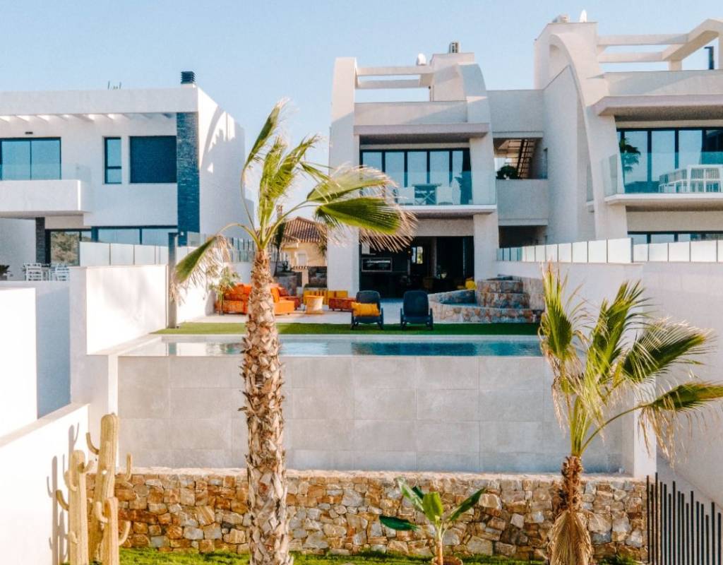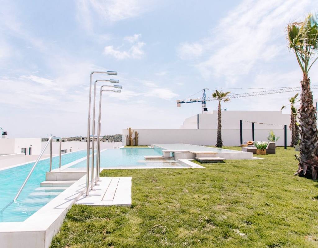 LUKSUS OG DESIGN LEILIGHET VED GOLFBANEN~ ~ Luksusleilighet som består av 4 store soverom, 3 bad, ett av rommene har eget bad. Den har kjøkken åpent mot stuen, 22 m2 terrasse med utsikt over utehagen og parkeringsplass + bod.~ ~ Fellesområdene har et utendørs fellesbasseng, en innendørs badstue med treningsstudio.~ ~ Omgitt av golfbaner som La Finca, La Marquesa, Villamartin, Las Colinas og Campoamor Golf. Nær store byer som Alicante og Murcia. Rojales ligger bare 5 km fra sandstrendene i Guardamar, El Moncayo og La Mata. Litt lenger unna finner vi strendene i Torrevieja og Orihuela Costa, hvor de kjente kjøpesentrene Habaneras og La Zenia Boulevard ligger.