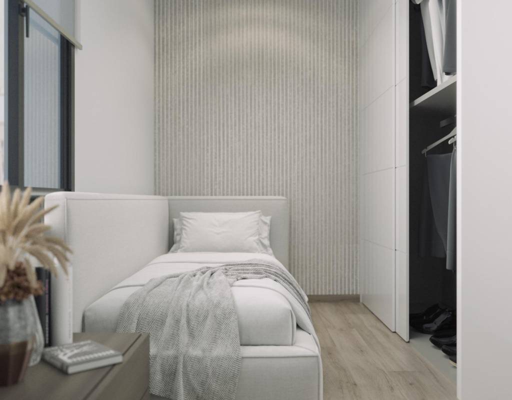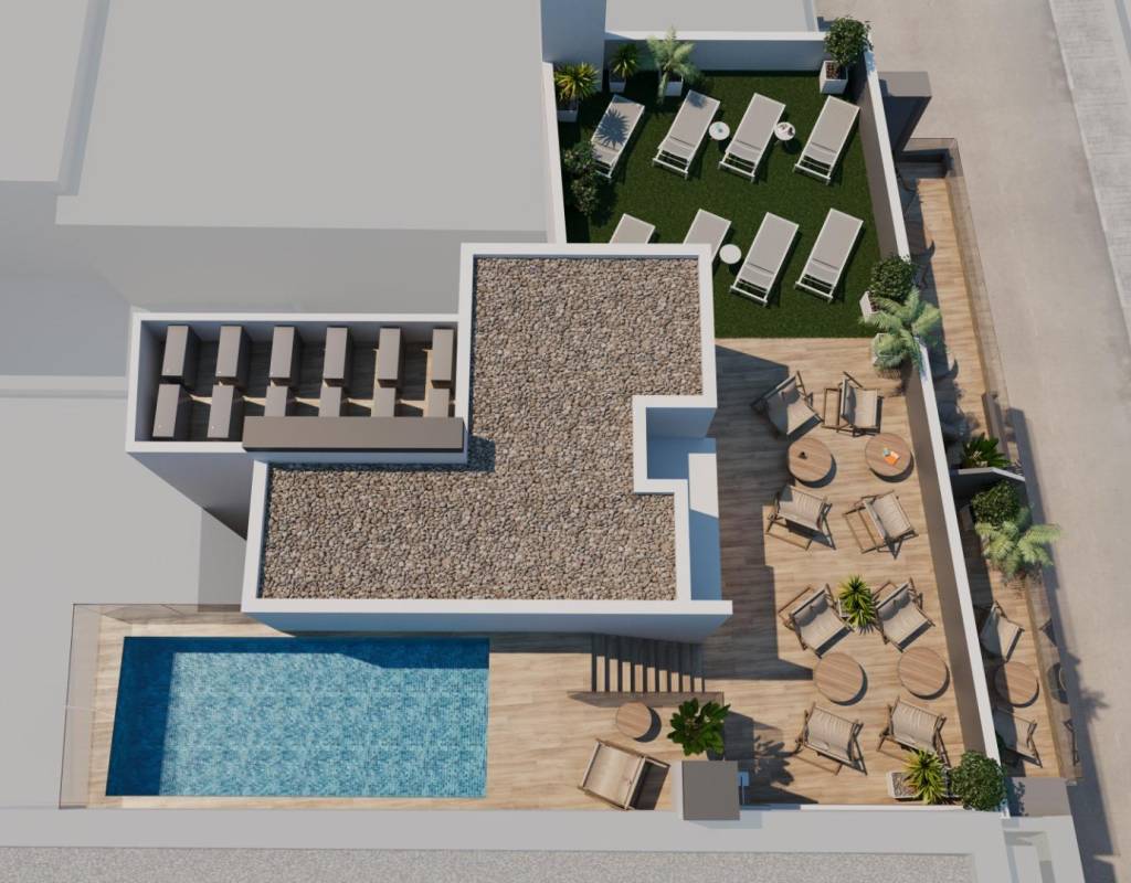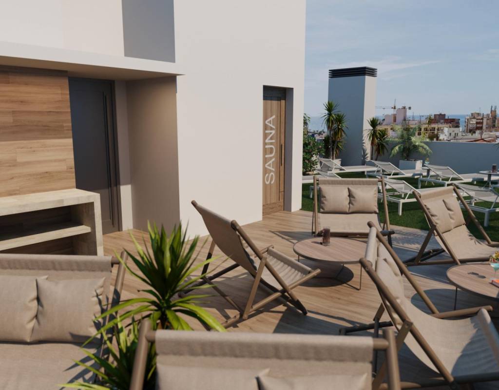 Nybygde leiligheter i Torrevieja, bare 600 meter fra Playa del Cura-stranden~~Førsteklasses beliggenhet i hjertet av Torrevieja~Oppdag disse splitter nye leilighetene og penthouse-leilighetene i et av de mest ettertraktede områdene i Torrevieja, bare 600 meter fra Playa del Cura-stranden og 400 meter fra strandpromenaden. Dette livlige nabolaget ligger i sentrum av byen og tilbyr alle nødvendige fasiliteter innen gangavstand, inkludert supermarkeder, butikker, restauranter, kafeer og offentlig transport. Torrevieja er en kjent kystby på Costa Blanca, kjent for sitt milde middelhavsklima, livlige atmosfære og helårlige livsstil ved sjøen.~~Moderne leiligheter med romslig planløsning~Dette eksklusive nye prosjektet består av bare 14 leiligheter og penthouse-leiligheter, inkludert studioer og 1- eller 2-roms leiligheter, designet for å tilby komfort, funksjonalitet og moderne stil. Alle boligene har et åpent kjøkken som er koblet til stue-spisestuen, utstyrt med hvitevarer, noe som skaper lyse og innbydende interiører. Soverommene har innebygde garderober, og badene er fullt utstyrt med møbler, speil, gulvvarme og dusjvegger.~~Kvalitetsfinish og energieffektive funksjoner~Leilighetene er bygget med materialer av høy kvalitet og med stort fokus på energieffektivitet. De utvendige aluminiumsvinduene har termisk isolasjon og doble vinduer for varme- og lydisolering. Motoriserte persienner gir ekstra komfort og sikkerhet. Hver bolig har forhåndsinstallert klimaanlegg og kanalisert oppvarming, forsterkede inngangsdører, belysningspakke og hvitlakkerte innerdører. Varmt vann produseres av et aerotermisk system, som reduserer energiforbruket og forbedrer bærekraften.~~Solarium på taket med felles svømmebasseng~Beboerne kan nyte et eksklusivt solarium på taket med felles svømmebasseng, grill, badstue og solterrasse med solsenger, tilgjengelig med heis eller trapper. Dette private området er perfekt for å slappe av, sole seg og nyte panoramautsikten over byen. Det tilbyr et fredelig tilfluktssted over de travle gatene i Torrevieja og gir prosjektet en betydelig merverdi.~~Livsstil og omgivelser i Torrevieja~Torrevieja er kjent for sin lange kystlinje, sandstrender og ikoniske saltsletter. Naturparken Lagunas de La Mata y Torrevieja ligger omtrent 5 km unna og tilbyr turstier og unike landskap. Flere golfbaner, som Villamartin Golf og Las Colinas Golf, ligger mellom 12 og 18 km unna. Marinaen og havnen i Torrevieja ligger omtrent 1 km unna. Alicante lufthavn ligger omtrent 45 km unna, og Murcia internasjonale lufthavn ligger omtrent 65 km unna, begge med gode forbindelser til Europa.~~Ditt hjem ved kysten venter~Ikke gå glipp av denne muligheten til å kjøpe en moderne, nybygd leilighet nær stranden i Torrevieja. Kontakt oss i dag for mer informasjon eller for å avtale en privat visning.
