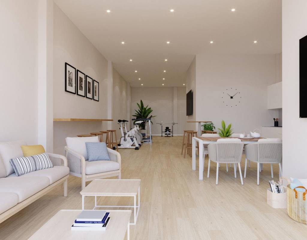 RESIDENCIAL DE OBRA NUEVA EN ALGORFA~~Residencial de obra nueva de 41 elegantes apartamentos y áticos en Algorfa.~~Residencial consta de apartamentos de 1, 2 y 3 dormitorios, con 1 o 2 baños, cocina americana con el salón, armarios empotrados.~Los modernos áticos disponen de solarium privado.~~Preinstalación de aire acondicionado frío/calor, impulsión por conductos y retorno por rejillas en falso techo.~Cocina y frente en compacto de PVC, equipada con armarios bajos y altos, frentes de cajones y puertas en combinación de laminado blanco y laminado de madera.~Etiqueta energética A.~~Acceso a una piscina comunitaria para la relajación y el ocio. Gimnasio in situ para los entusiastas de la salud y la forma física.~~Enclavado en el corazón de un pueblo tradicional, Algorfa ofrece la mezcla perfecta de encanto español y comodidades modernas, por lo que es un destino ideal tanto para turistas como para locales.~~~Residencial situado a poca distancia del centro del pueblo, colegios y el campo de golf La finca.~A sólo 15 minutos de hermosas playas y hospitales.~A 35 minutos en coche del aeropuerto.
