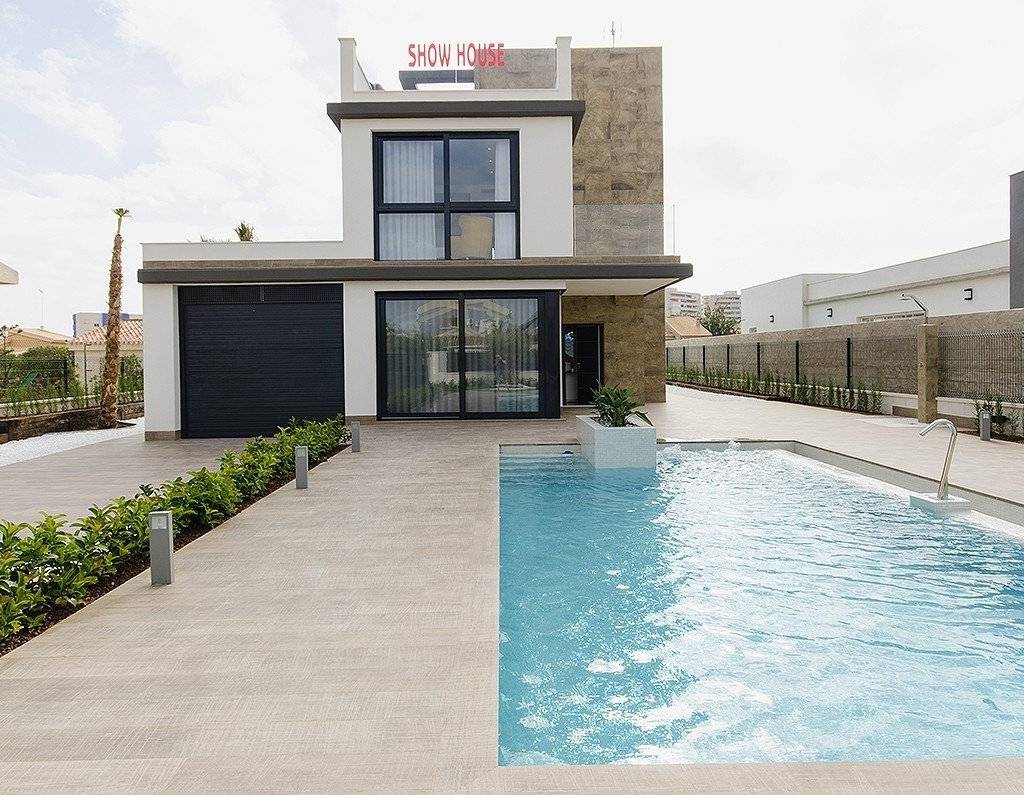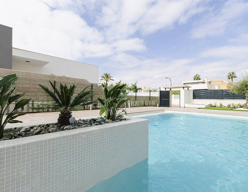 VILLA DE OBRA NUEVA EN ORIHUELA COSTA (CAMPOAMOR)~ ~ ¿Quieres disfrutar de unas vacaciones exclusivas cerca del mar? Imposible no caer rendido a este ultramoderno chalet en Orihuela Costa de 4 dormitorios, 2 baños, piscina privada, jardín y extras de lujo, según las preferencias personales. Su delicada infraestructura se integra con la naturaleza proporcionando un entorno tranquilo y aislado.~ ~ Construida con los materiales de la más alta calidad, esta elegante propiedad, se encuentra rodeada de una abundante vegetación y a escasos metros de las playas más limpias de Campoamor: playa de la Glea, Aguamarina y Cabo Roig. Es un gusto tener al alcance estas tres preciosas playas galardonadas con Bandera Azul. Siempre que necesites un momento de reflexión, puedes bajar a rozar sus aguas cristalinas o tumbarte en su suave arena a leer un libro mientras escuchas el plácido sonido del mar.~ ~ En los alrededores encontrarás todos los servicios imprescindibles para vivir todo el año: supermercados, farmacias, cafeterías, restaurantes, centros comerciales… Y si además te entusiasma el golf, a menos de 10 minutos puedes escoger entre tres privilegiados campos de golf de reconocimiento internacional donde poner a prueba tu puntería: Las Colinas Golf, Villamartín o Las Ramblas.~ ~ La promoción comprende varios modelos de viviendas de 2,3,4 y hasta 5 dormitorios. Este chalet en concreto consta de 4 dormitorios dobles, 2 baños, cocina americana completamente equipada, salón comedor abierto con una gran iluminación, salida al jardín y la hermosa piscina. ~ ~ Además, el precio incluye:~ Suelo radiante y espejo en baños~ Luces interiores y exteriores~ Armarios empotrados~ Puerta de seguridad~ Preinstalación de aire acondicionado~ Electrodomésticos de primeras marcas~ ~ La vivienda sigue la tendencia de diseño de concepto abierto, potenciando los espacios amplios y ofreciendo una mayor sensación de comodidad y bienestar en sus interiores.
