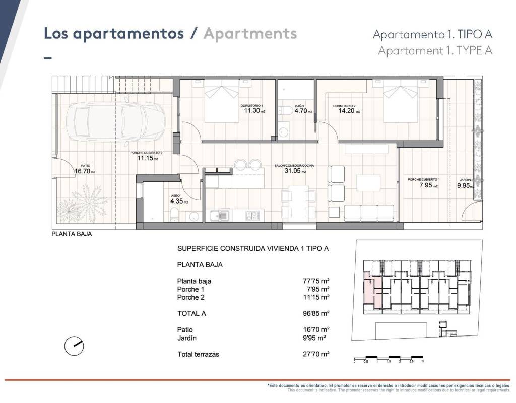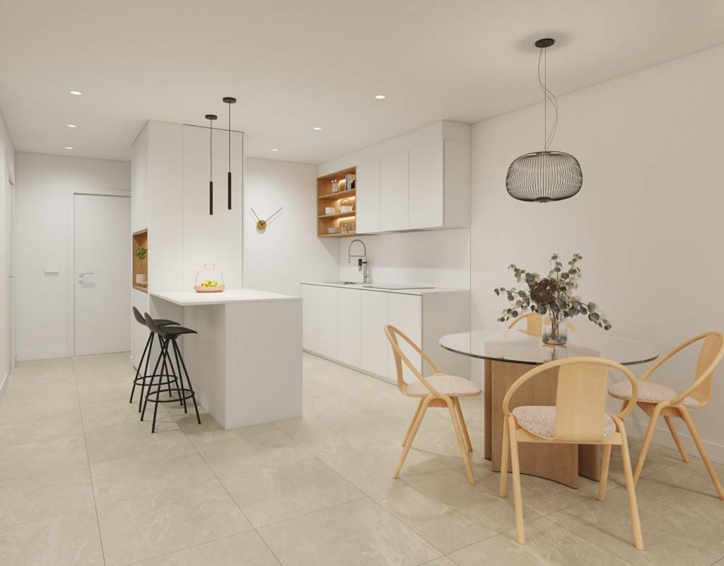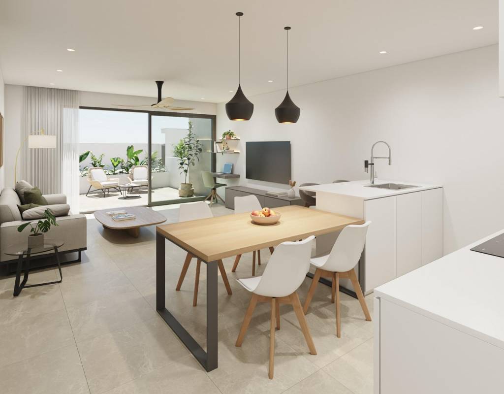 Apartamentos modernos en Pilar de la Horadada - Exclusivo complejo residencial de nueva construcción~~Descubra un nuevo complejo residencial de 12 elegantes apartamentos con amplias zonas comunes situado en la vibrante localidad de Pilar de la Horadada, Costa Blanca. Esta comunidad cerrada ofrece modernas instalaciones y está diseñada para proporcionar comodidad y conveniencia en una ubicación privilegiada, cerca de todos los servicios esenciales y atracciones populares.~~Servicios excepcionales para un estilo de vida confortable~El complejo residencial cuenta con un garaje privado al aire libre, aparcamiento para bicicletas con puntos de carga eléctrica, amplios jardines paisajísticos y una moderna piscina con zona de playa y tumbonas. También hay vestuarios y aseos para mayor comodidad. El proyecto está construido con materiales de alta calidad, sistemas de ahorro de energía y tecnologías de vanguardia, como la apertura remota de puertas.~~Apartamentos cuidadosamente diseñados~Elija entre apartamentos de 2 dormitorios con cocina americana, amplias zonas de estar y terrazas. Los apartamentos de la planta baja cuentan con jardines privados, mientras que los de la planta superior disponen de terrazas y solariums. Cada apartamento está diseñado para maximizar el espacio y la luz natural, con orientación sur para un confort óptimo. Las características modernas incluyen iluminación LED, aire acondicionado preinstalado, baños totalmente equipados y electrodomésticos de cocina contemporáneos.~~Ubicación privilegiada cerca de playas y campos de golf~Pilar de la Horadada ofrece fácil acceso a las necesidades diarias, instalaciones deportivas y hermosas playas a sólo 3 km de distancia. La ciudad está bien comunicada, con el aeropuerto de Murcia a 40 km y el aeropuerto de Alicante a 75 km. Disfrute de campos de golf de categoría mundial, incluidos cinco en un radio de 15 km, y de las compras en La Zenia, a sólo 15 minutos en coche.