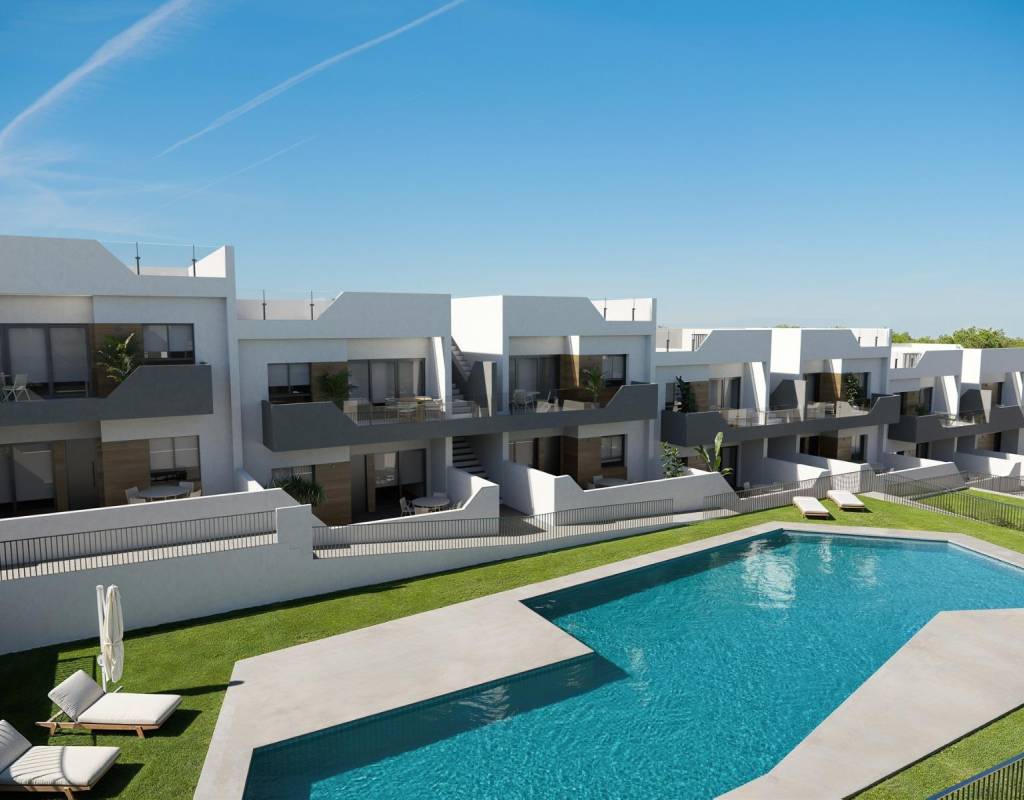 BUNGALOWS DE OBRA NUEVA EN SAN MIGUEL DE SALINAS~~Residencial de obra nueva de bungalows en San Miguel del Salinas.~~Residencial de bungalows de 2 y 3 dormitorios, en planta baja con jardín privado o planta alta con solarium privado.~~Un exclusivo complejo residencial que ofrece viviendas de alta calidad con excelente aislamiento térmico y acústico, acabados de primera calidad y completas instalaciones. Las instalaciones incluyen dos piscinas, amplias zonas ajardinadas y zonas comunes bien diseñadas, que garantizan un entorno confortable y seguro. Cada vivienda cuenta con modernas cocinas amuebladas, suelos porcelánicos y eficientes sistemas de fontanería y aire acondicionado.~~Residencial situado en San Miguel de Salinas cerca de los campos de golf de Las Colinas y Campoamor, centros comerciales, las lagunas de Torrevieja y La Mata y las playas de Orihuela Costa.~~~San Miguel de Salinas es un municipio de la Comunidad Valenciana, España. Situado al sur de la provincia de Alicante, en la comarca de la Vega Baja del Segura cerca de la Región de Murcia.~~El aeropuerto de Alicante se encuentra a 35 minutos en coche y el aeropuerto de Murcias Corvera a 1 hora en coche.