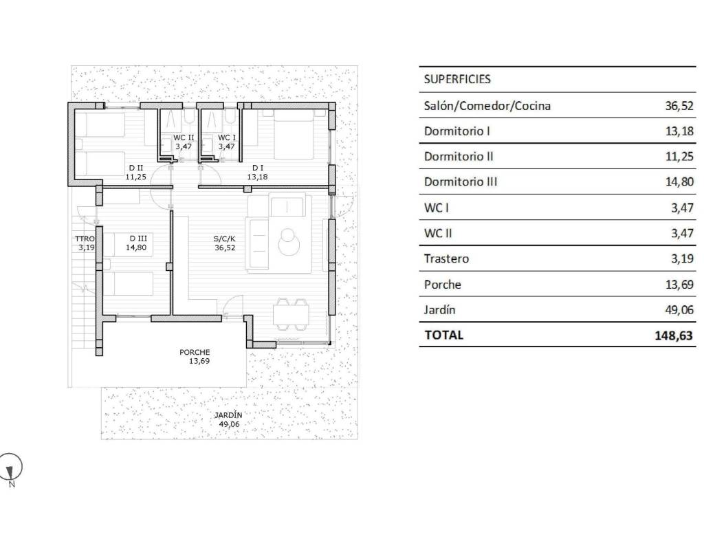 - Terraza: 13m2