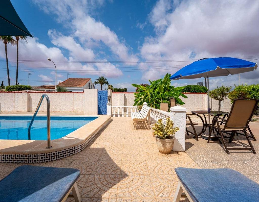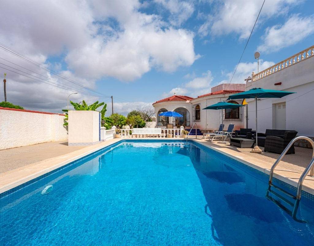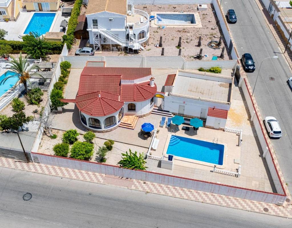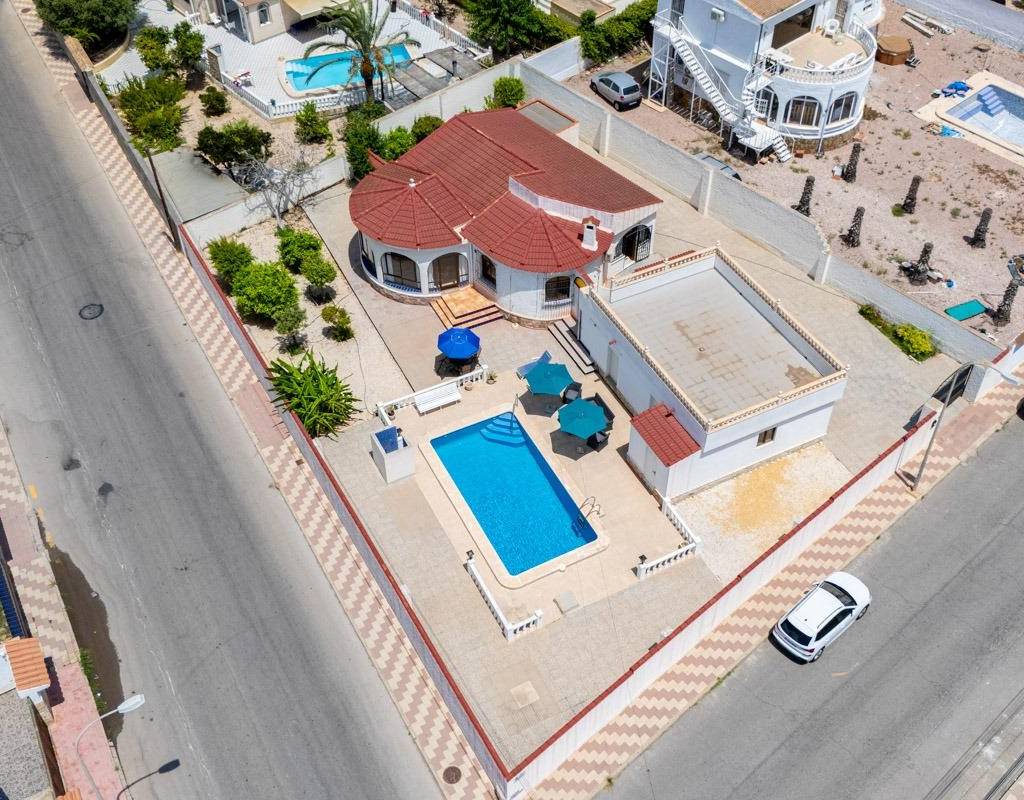 Descubra el estilo de vida tradicional que siempre ha soñado: el modelo Bellavista~Adéntrese en el encanto mediterráneo atemporal con esta villa de estilo tradicional bellamente diseñada, situada en una zona privilegiada de Torrevieja.~El modelo Bellavista ofrece la mezcla perfecta de elegancia, confort y comodidad, ideal tanto para vivir a tiempo completo como para escapadas vacacionales.~~Esta impresionante casa cuenta con:~3 amplios dormitorios y 2 baños bien equipados~Un lavadero dedicado para su comodidad diaria~Un trastero independiente para tenerlo todo organizado~Un garaje privado con espacio para 2 coches, además de un baño exterior adicional~Su propia piscina privada, perfecta para relajarse o entretenerse~Un gran solarium con impresionantes vistas al famoso lago de sal rosa~~Disfrute de la tranquilidad de su villa mientras se encuentra a un corto paseo de todos los servicios esenciales:~Bares y restaurantes~Farmacia~Banco~Tiendas locales~A sólo unos minutos, encontrará un espectacular parque familiar que cuenta con:~Pistas de pádel, campos de fútbol~Un gimnasio al aire libre~Una zona de juegos infantiles y teatro al aire libre~Y el nuevo e increíble Pump Track de Torrevieja, ¡una visita obligada para los amantes del ciclismo y el patinaje!~~La salud y el bienestar también están a su puerta, con fácil acceso al centro de salud local, la clínica y la iglesia.~Esta propiedad no es sólo una casa, es un estilo de vida.~Descubra la belleza, la tradición y la comodidad de la villa modelo Bellavista y disfrute de la vida mediterránea con la que siempre ha soñado.