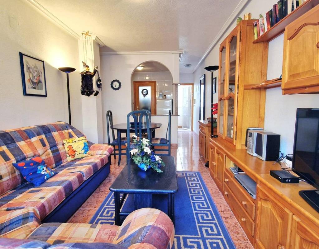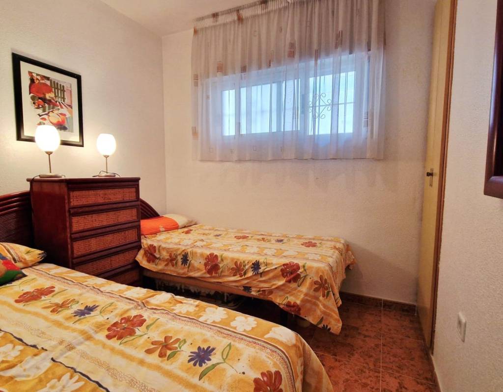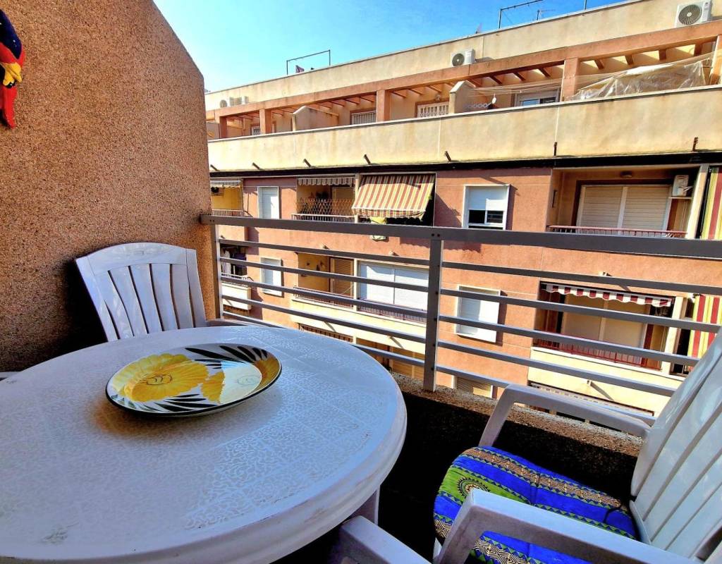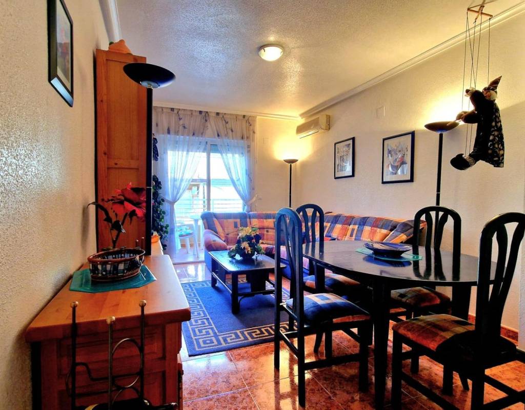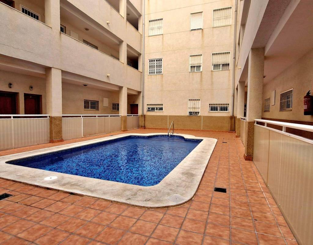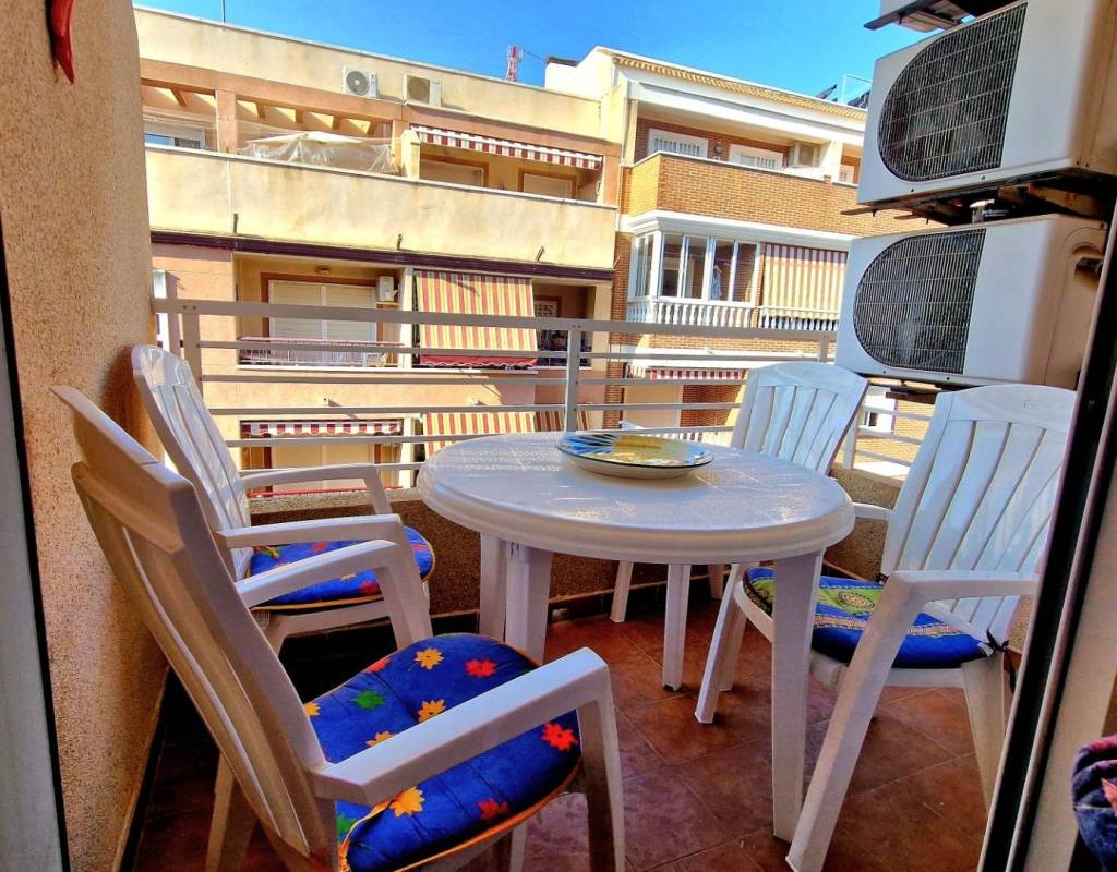 En el corazón del encantador Parque de las Naciones, a solo 800 metros de la playa, te presentamos este acogedor apartamento ideal para familias. Ubicado en una urbanización tranquila y segura, disfrutarás de colegios y servicios esenciales al alcance. Con sus bien distribuidos 50m² útiles, esta vivienda ofrece dos amplios dormitorios con armarios empotrados que maximizan cada rincón; además cuenta con una moderna cocina americana integrada al salón perfecto para crear recuerdos inolvidables entre amigos y familiares.~~El apartamento está equipado con tres sistemas individuales de aire acondicionado que garantizan confort durante todo el año. La seguridad es prioritaria aquí gracias a rejas reforzadas mientras disfrutas tanto desde su galería destinada a lavandería como desde la terraza exterior privada (5m²) donde imaginar tus tardes veraniegas bajo el sol mediterráneo.~~La vida comunitaria también se hace presente: podrás refrescarte en la piscina compartida o aprovechar los espacios comunes ideales para charlas nocturnas bajo un cielo estrellado. Torrevieja no solo brinda más de 300 días soleados anualmente sino un estilo relajado junto al mar lleno actividades recreativas tañendo vibrantes paseos marítimos llenos encanto e historia.~~Con toda esta oferta cultural justo frente tu puerta -y siendo accesible por carretera ya sea hacia grandes ciudades cercanas.- vivir aquí significa obtener mucho más que simple propiedad; representa adoptar nuevo estilo vital completo ante maravillas cotidianas.