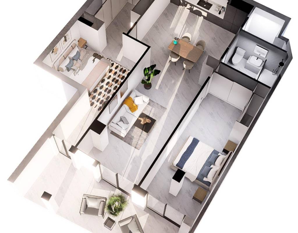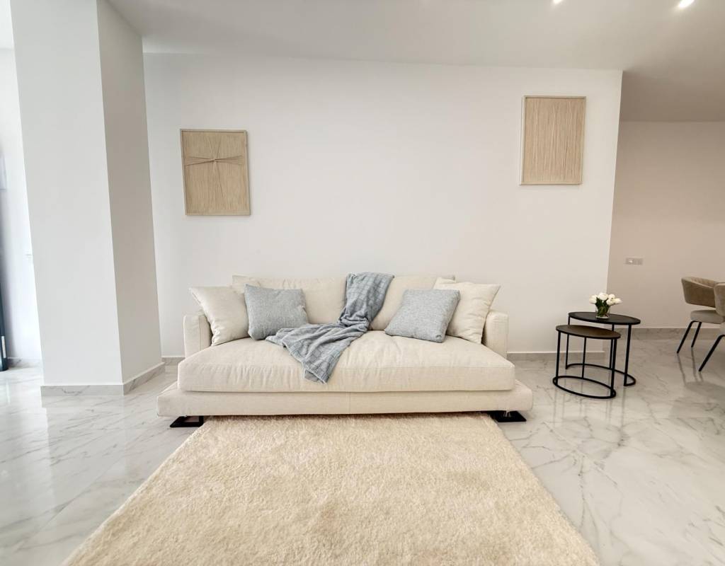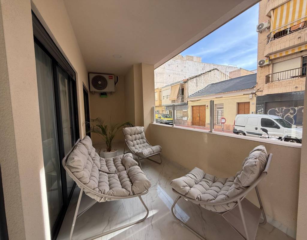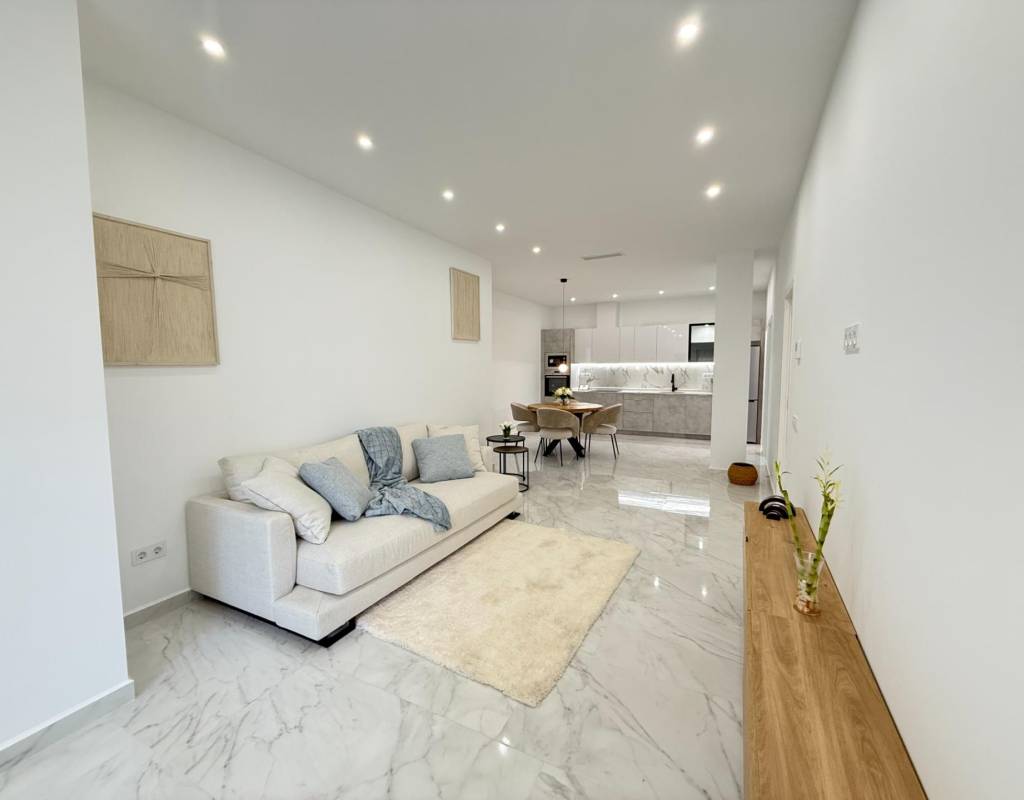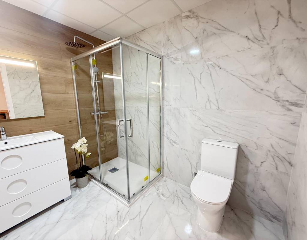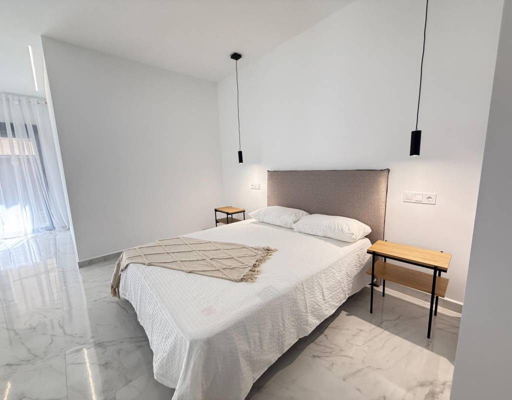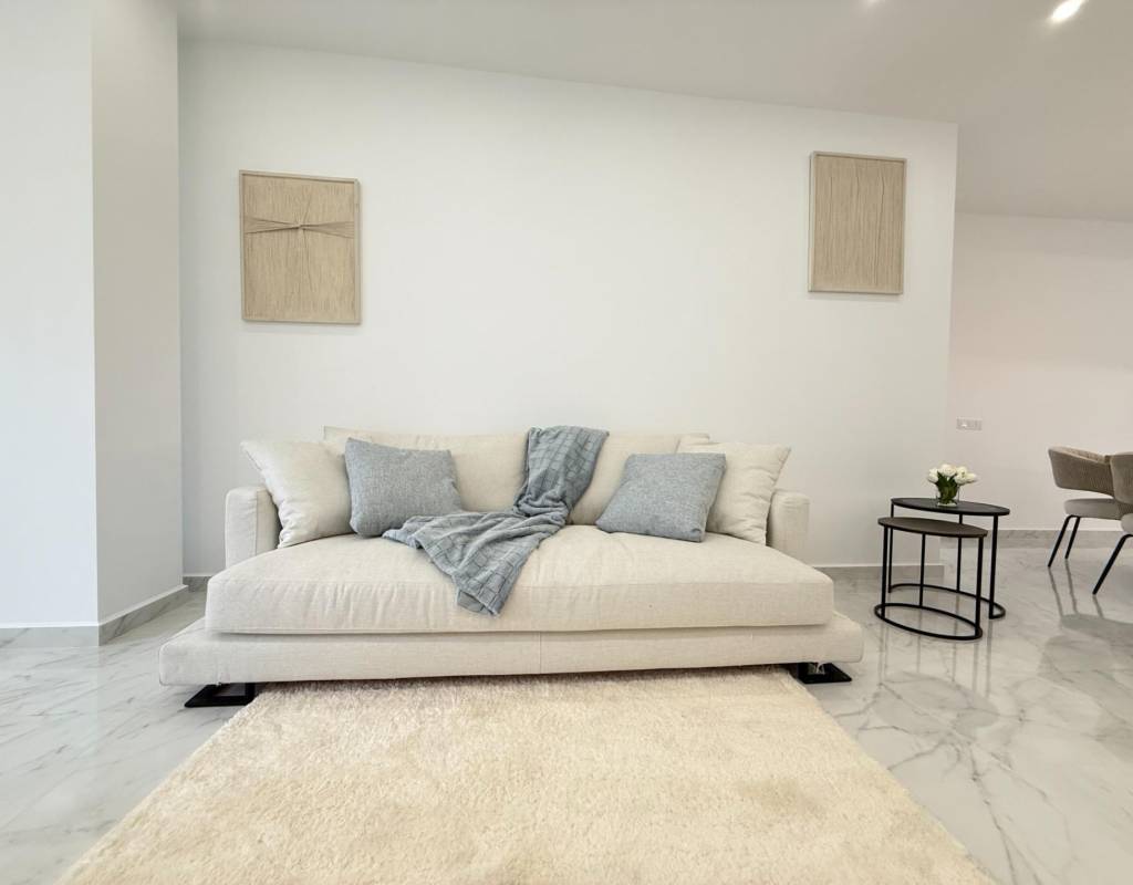 En venta esta increíble oportunidad de vivienda de obra nueva en el mismo centro de Torrevieja, a tan solo un paso del paseo de Juan Aparicio y en segunda linea de playa. En esta vivienda se disfruta de una gran luminosidad, con luz natural gracias a su orientación sur y ofrece un estilo moderno y elegante.~~Esta propiedad destaca por su distribución y por el equilibrio perfecto entre diseño, funcionalidad y calidad. Dispone de 2 dormitorios, el dormitorio principal esta equipado con baño privado y un espacioso vestidor, ideal para quienes valoran la comodidad y la organización. El segundo dormitorio cuenta con acceso directo a la terraza, lo que aporta una agradable sensación de amplitud y luminosidad. Además, la vivienda incluye un segundo baño completo con plato de ducha y sistema de suelo radiante, diseñado con materiales de primera calidad.~~El salón-comedor y la cocina forman un espacio abierto, moderno y acogedor. La cocina está completamente equipada con electrodomésticos de última generación, integrados de forma armoniosa en un diseño contemporáneo y funcional. A ello se suma una práctica despensa que ofrece un excelente espacio de almacenamiento, así como una espectacular terraza de 12,27 m², perfecto para disfrutar del clima templado de Torrevieja durante todo el año.~~Esta propiedad se entrega completamente amueblada, con mobiliario de alta gama importado desde Italia y Portugal. Cada estancia ha sido decorada con un estilo moderno y sofisticado, creando un ambiente equilibrado y acogedor. Además, la vivienda incluye persianas eléctricas, amplios ventanales de alta calidad que aportan aislamiento térmico y acústico, y acabados de lujo en todas las zonas, garantizando la máxima eficiencia y bienestar.~~La vivienda se encuentra en la planta baja de un edificio ya existente, lo que ofrece fácil accesibilidad y una mayor comodidad para el día a día. Su ubicación es inmejorable: en una de las áreas más demandadas de Torrevieja.~~Esta propiedad representa una oportunidad excepcional tanto como residencia habitual, como para aquellos que buscan una inversión segura y rentable en una de las zonas más codiciadas de la Costa Blanca. Sin duda, una oportunidad única para disfrutar de la vida en Torrevieja desde una perspectiva de lujo, confort y elegancia contemporánea.