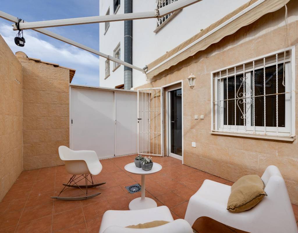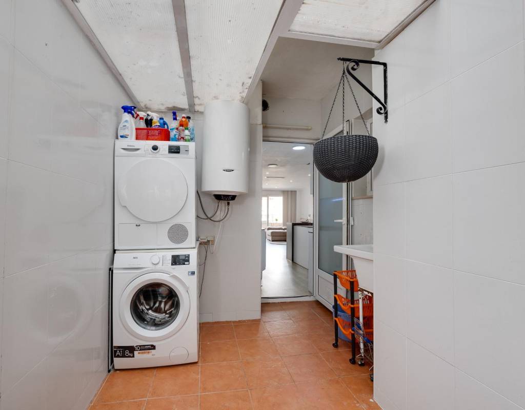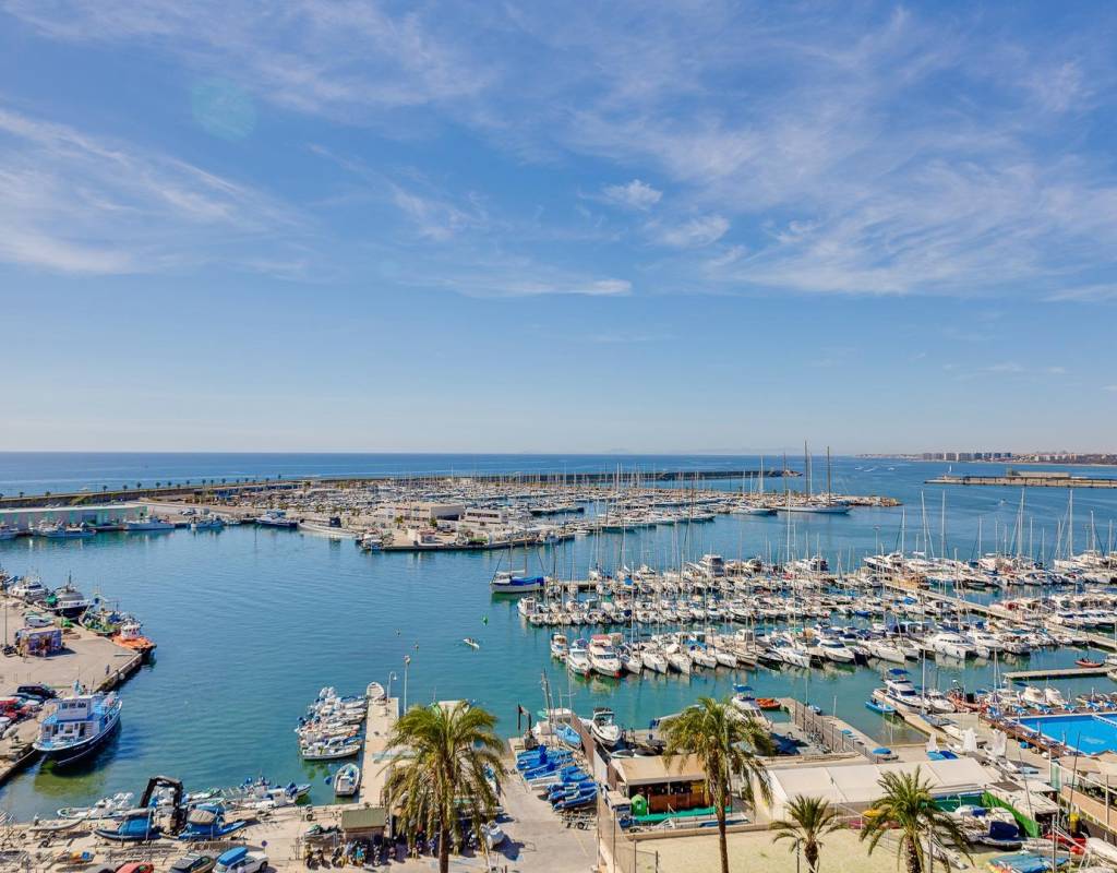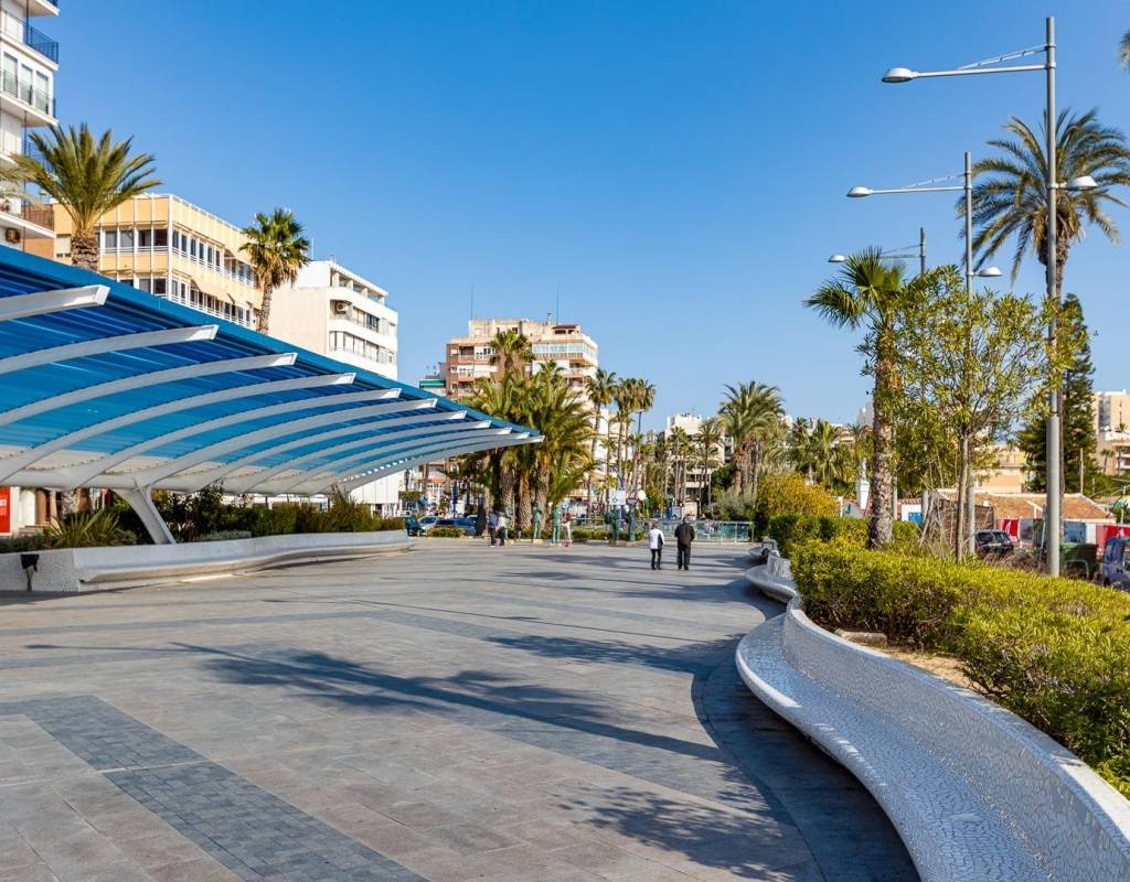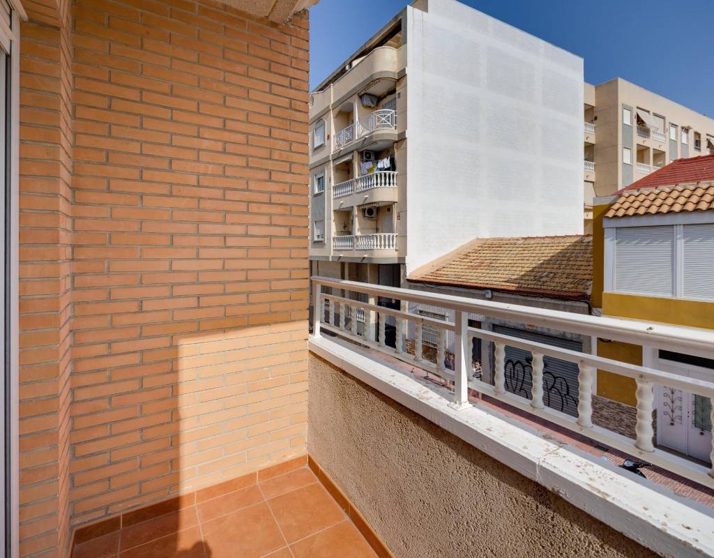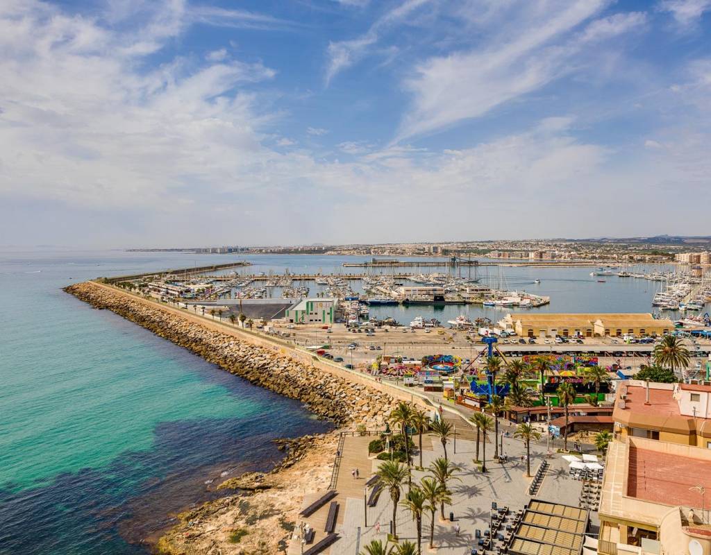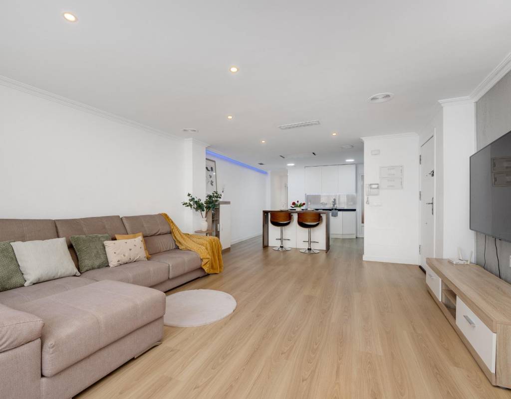 Descubre este magnífico y amplio apartamento, ubicado en pleno centro de Torrevieja, con todos los servicios a pie de calle y a tan solo 700 metros del mar y del emblemático paseo marítimo. Una ubicación privilegiada para disfrutar del estilo de vida mediterráneo sin renunciar a la comodidad.~~La vivienda, totalmente reformada con materiales de calidad, se sitúa en una primera planta con ascensor y ofrece una distribución moderna, funcional y elegante, pensada para el máximo confort.~~Al entrar, te recibe un espacioso y luminoso salón-comedor, con salida a una encantadora terraza, perfecta para disfrutar de un ambiente fresco y agradable. La cocina americana con barra, totalmente equipada, conecta con un patio interior con zona de lavandería, aportando practicidad al día a día.~~Dispone de 3 amplios dormitorios dobles y 2 baños completos. El dormitorio principal en suite destaca por su vestidor, baño privado y acceso a una terraza trasera con orientación sur, que inunda de luz natural la vivienda. En esta terraza podrás relajarte y disfrutar del clima mediterráneo, además de contar con una zona de trastero que aporta un valioso espacio extra de almacenaje.~~🔑 Un valor añadido difícil de encontrar: el precio incluye dos plazas de garaje en el mismo edificio, un auténtico lujo en una ubicación tan céntrica.~~Una vivienda exclusiva, lista para entrar a vivir. No dejes pasar esta oportunidad!