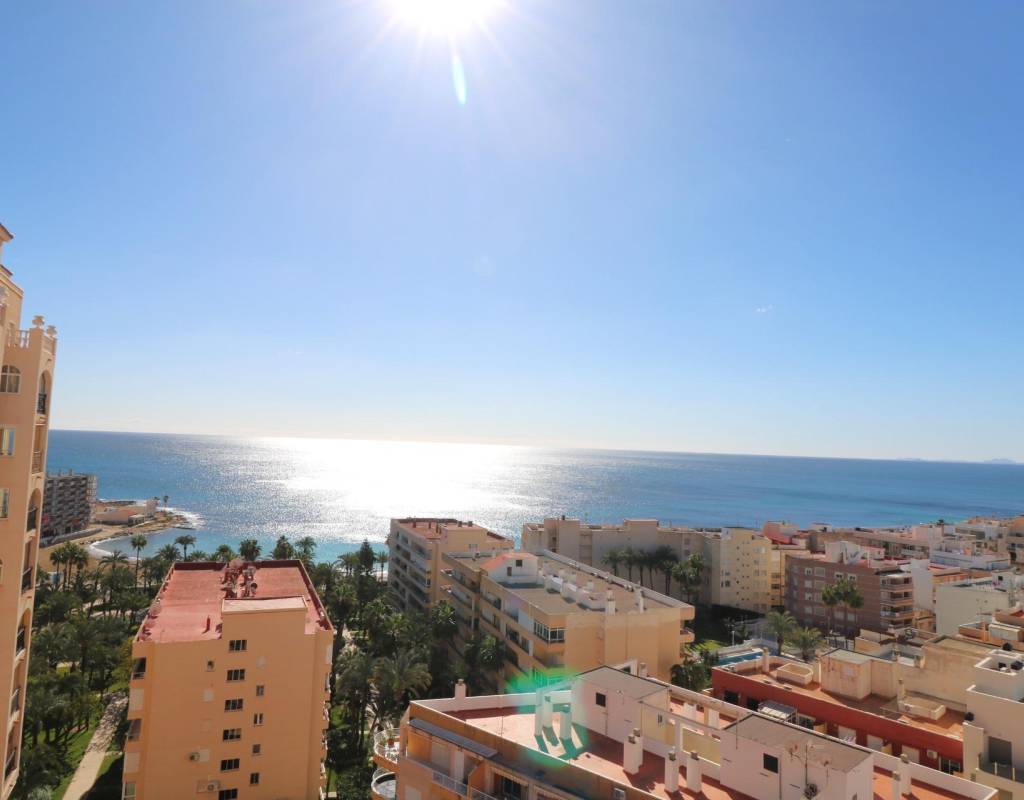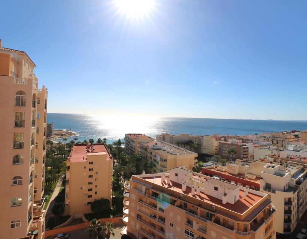 Descubre este espectacular apartamento en Atalayas, situado en la codiciada zona de Los Frutales, Torrevieja. Con una superficie construida de 84 m², esta propiedad se encuentra ubicada en una planta trece que ofrece impresionantes vistas al mar desde su acogedor balcón. El inmueble cuenta con dos dormitorios dobles y dos baños completos, ideal para disfrutar del confort y la privacidad. La orientación hacia el este garantiza luminosidad durante todo el día. Además, podrás relajarte o socializar gracias a las instalaciones comunitarias que incluyen piscina y acceso a varios ascensores dentro de un entorno cerrado exclusivo. A solo 250 metros del mar Mediterráneo; es perfecto tanto como residencia permanente como inversión vacacional por su buena conservación y atractivo diseño exterior.