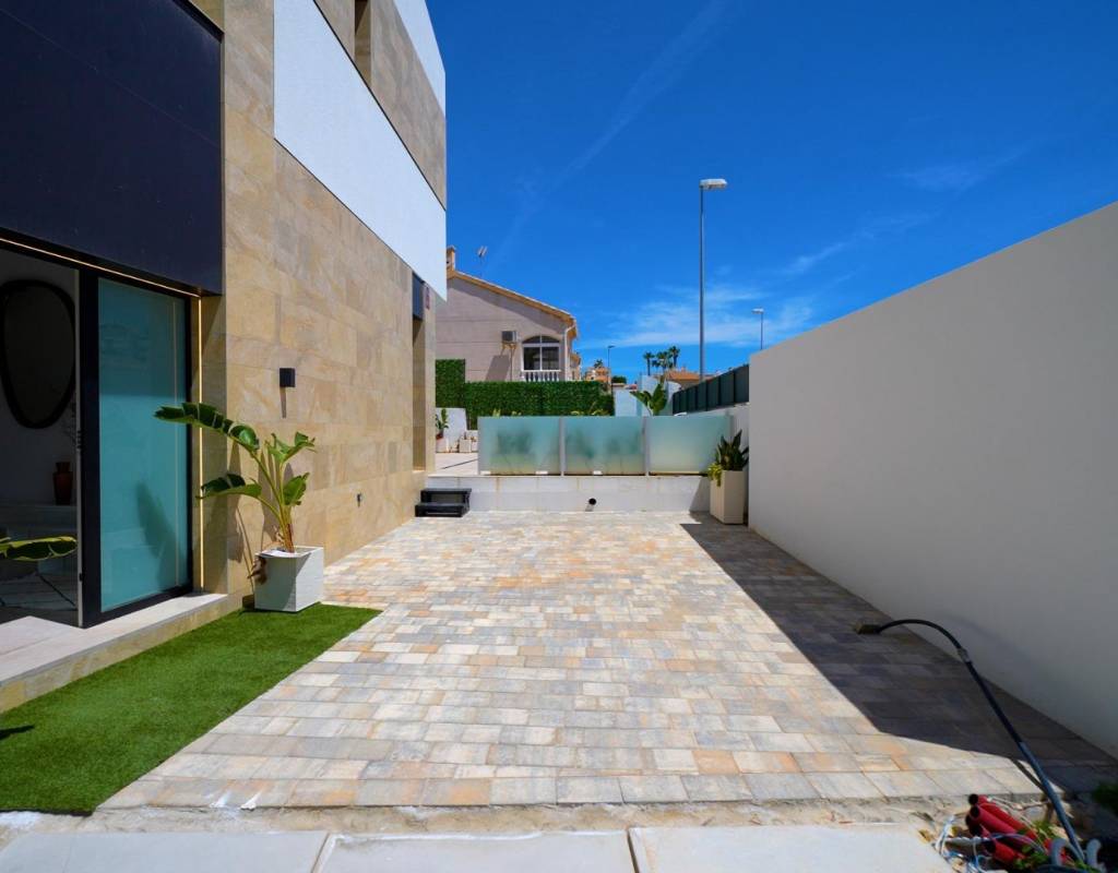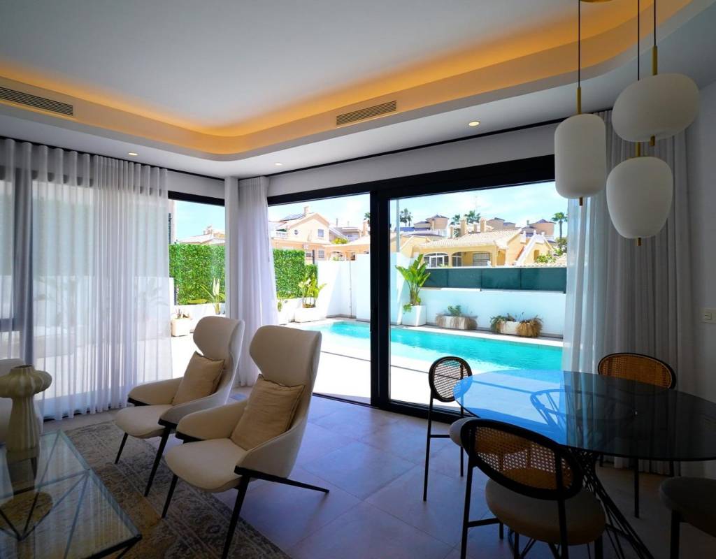 Nybyggda lyxvillor i Orihuela Costa – mindre än 4 km från stranden~~Upplev ett förstklassigt liv vid kusten i detta exklusiva nya bostadsområde med 10 fristående villor i Los Altos, ett av de mest eftertraktade områdena i Orihuela Costa, Alicante. Dessa lyxvillor är designade med komfort, stil och funktionalitet i åtanke och erbjuder en perfekt blandning av modern arkitektur och medelhavsliv, bara några minuter från havet och alla nödvändiga tjänster.~~Rymliga villor med privata pooler och solarium~Varje villa är fördelad på två våningar plus ett taksolarium och inkluderar:~3 sovrum, varav 2 med egna badrum~3 fullt utrustade badrum~Öppen planlösning med kök i anslutning till vardagsrummet~Stora fönster som ger naturligt ljus och direkt tillgång till terrassen~Privat trädgård med en halvtakad terrass och pool~Privat parkering på tomten~~Dessa bostäder är perfekta för familjer, pensionärer eller investerare som söker en högkvalitativ bostad nära stranden på Costa Blanca.~~Premiumfinish och energieffektiva system~Varje villa är byggd enligt höga specifikationer och har:~Porcelanosa-kakel i hela fastigheten~Aerotermiskt vattenvärmesystem för energieffektivitet~Moderna badrum med möbler och duschväggar~Motoriserade persienner i alla sovrum~Rymligt taksolarium perfekt för solbad eller avkoppling utomhus~~Alla material och ytbehandlingar är noggrant utvalda för att erbjuda ett raffinerat, hållbart och miljömedvetet hem.~~Utmärkt läge i Los Altos, Orihuela Costa~Detta bostadsområde ligger mindre än 4 km från stränderna i Punta Prima och Playa Flamenca och erbjuder enkel tillgång till det bästa av Orihuela Costa. Området är känt för sin utmärkta infrastruktur och service, inklusive:~Zenia Boulevard shoppingcenter – 3 km~Villamartín Golf – 5 km~Las Ramblas Golf – 7 km~Alicante flygplats – 55 km~Murcia-Corvera flygplats – 60 km~Torrevieja Marina – 6 km~~Los Altos är ett lugnt men livligt område med stormarknader, skolor, vårdcentraler och restauranger, vilket gör det till en idealisk plats för åretruntboende eller semester.~~Din lyxvilla väntar på Costa Blanca~Missa inte chansen att bli ägare till en fantastisk ny villa i ett av de mest eftertraktade kustområdena i Alicante. Kontakta oss idag för mer information eller för att boka en visning.